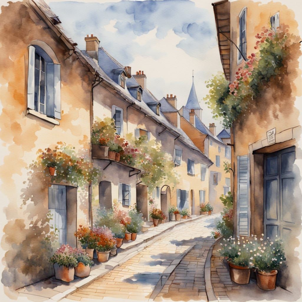 Easily generate your own watercolor paintings of charming French villages, streets, and cafes for free.