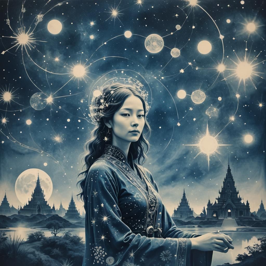 #open-prompt #ten-word-prompt #ethereal-cyanotype #landscape #woman