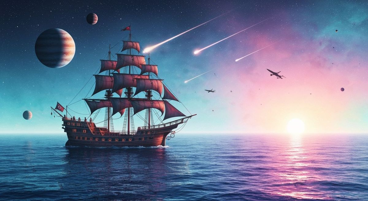 Generate your own pirate ship art sailing through space! It's free, easy, and endlessly creative with our AI.