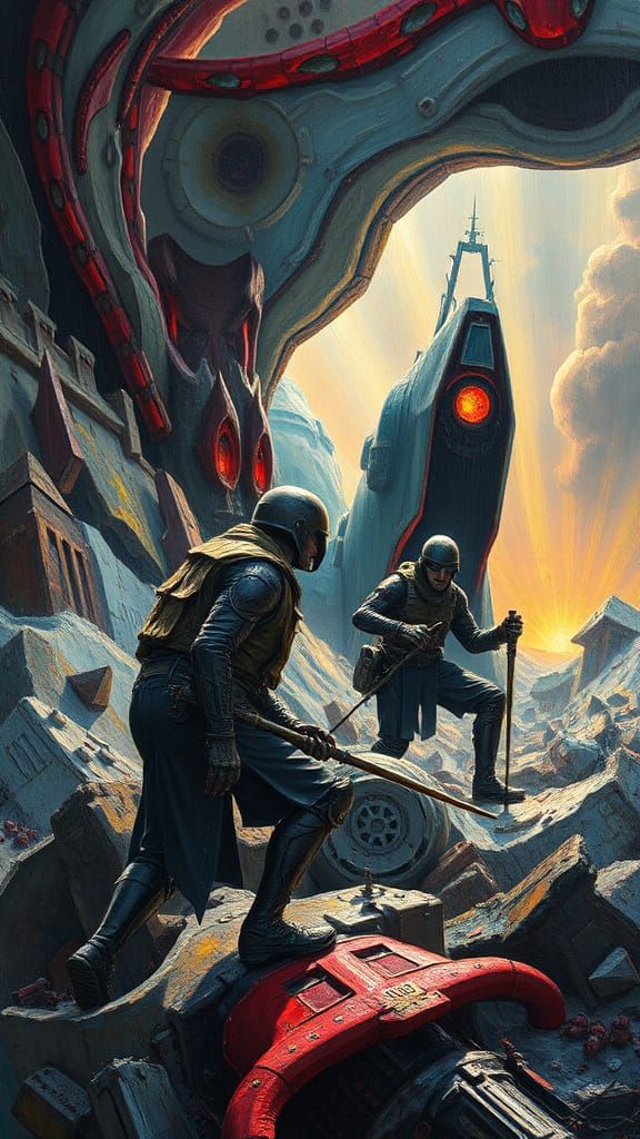 Create your own dramatic action paintings in the style of Moebius with our free AI image generator.