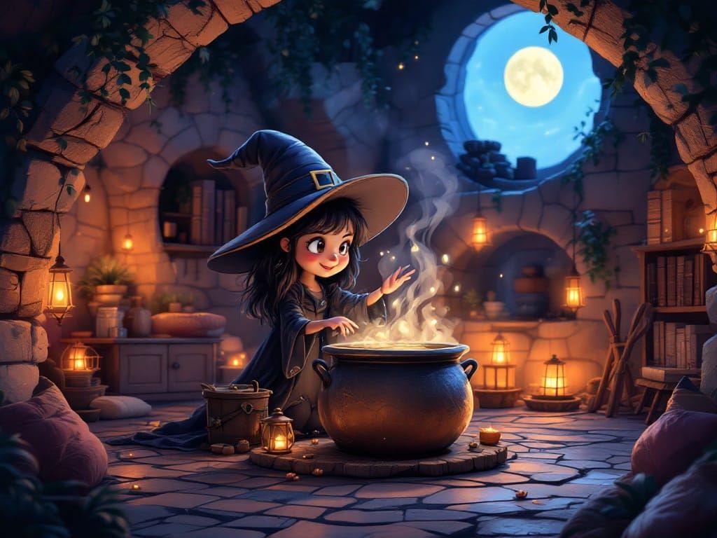 Easily generate your own whimsical witch images with our free AI image generator, perfect for fantasy art and cozy settings