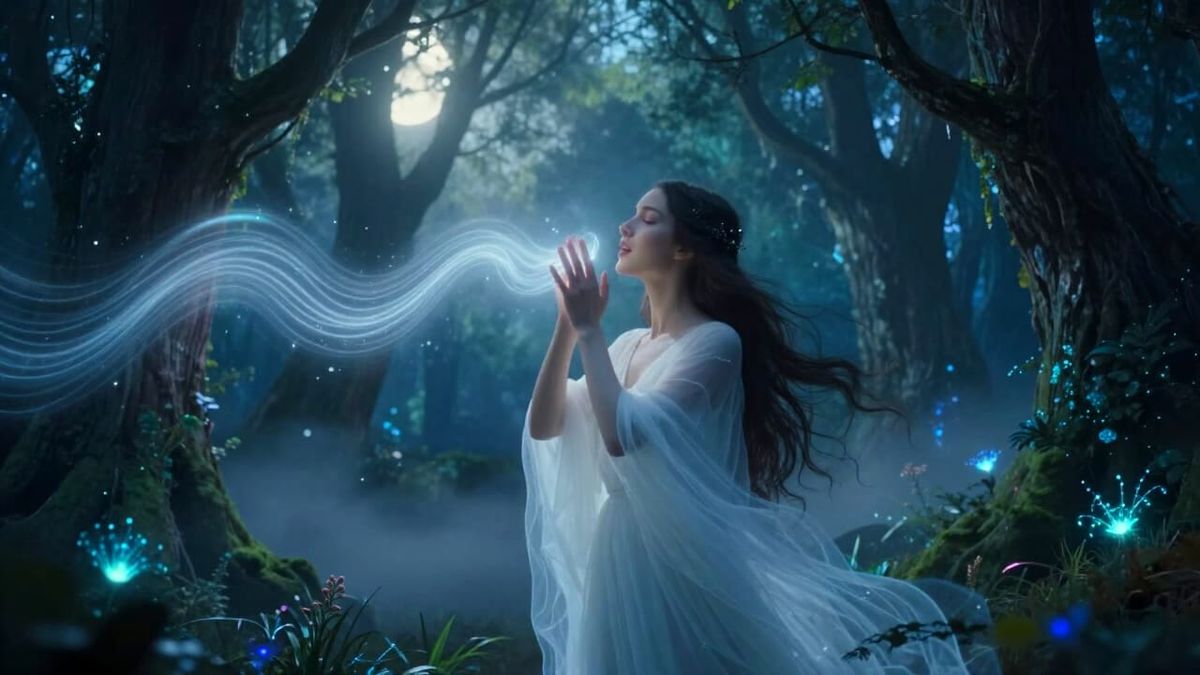 This image is an AI-generated portrait of Enya, capturing her ethereal presence. The artwork focuses on soft lighting and a peaceful atmosphere.