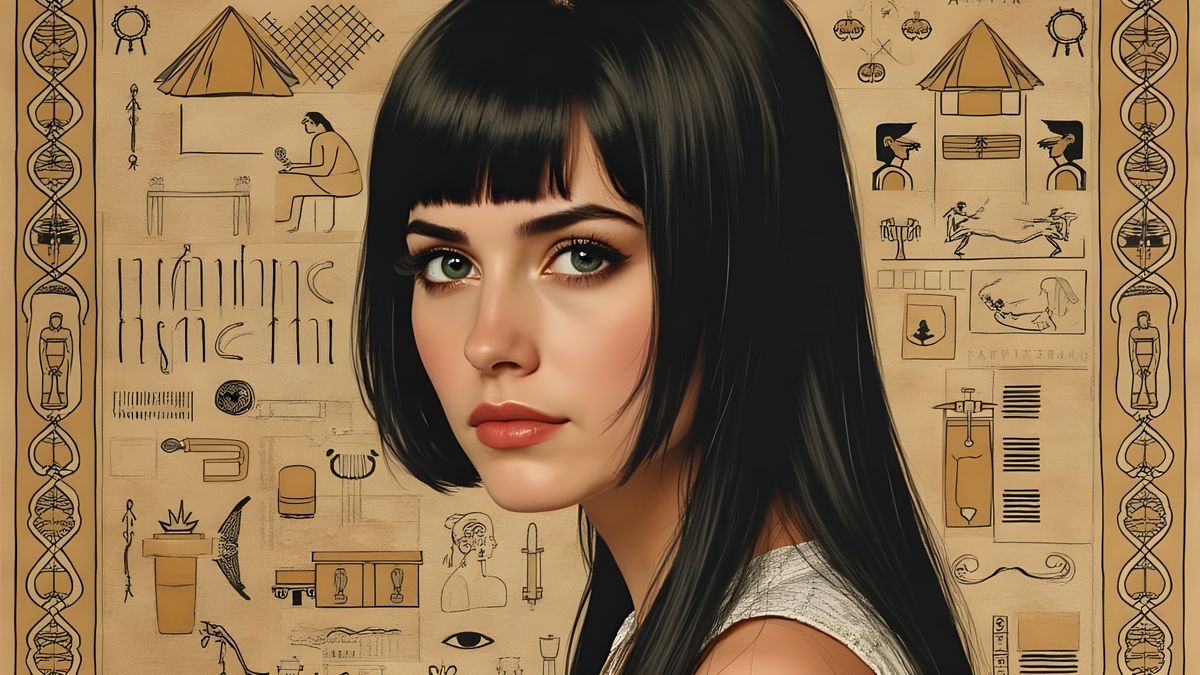 This vibrant collage brings together the iconic Kathleen Hanna with the mystique of Ancient Egyptian DNA, blending punk rock spirit with ancient mysticism in a unique visual fusion.