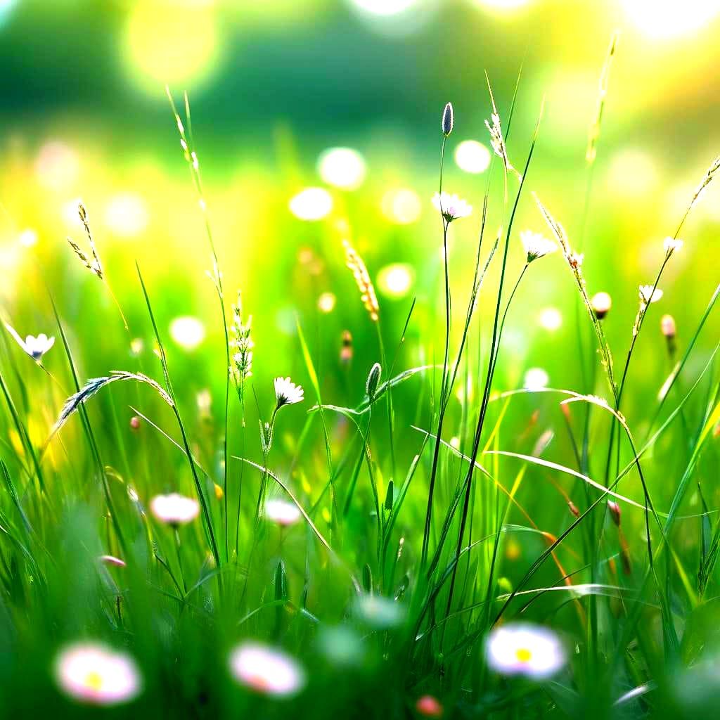 This image shows a desktop wallpaper featuring a sunlit meadow. The scene evokes a sense of tranquility with its bokeh effect and sharp focus, reminiscent of professional photography.