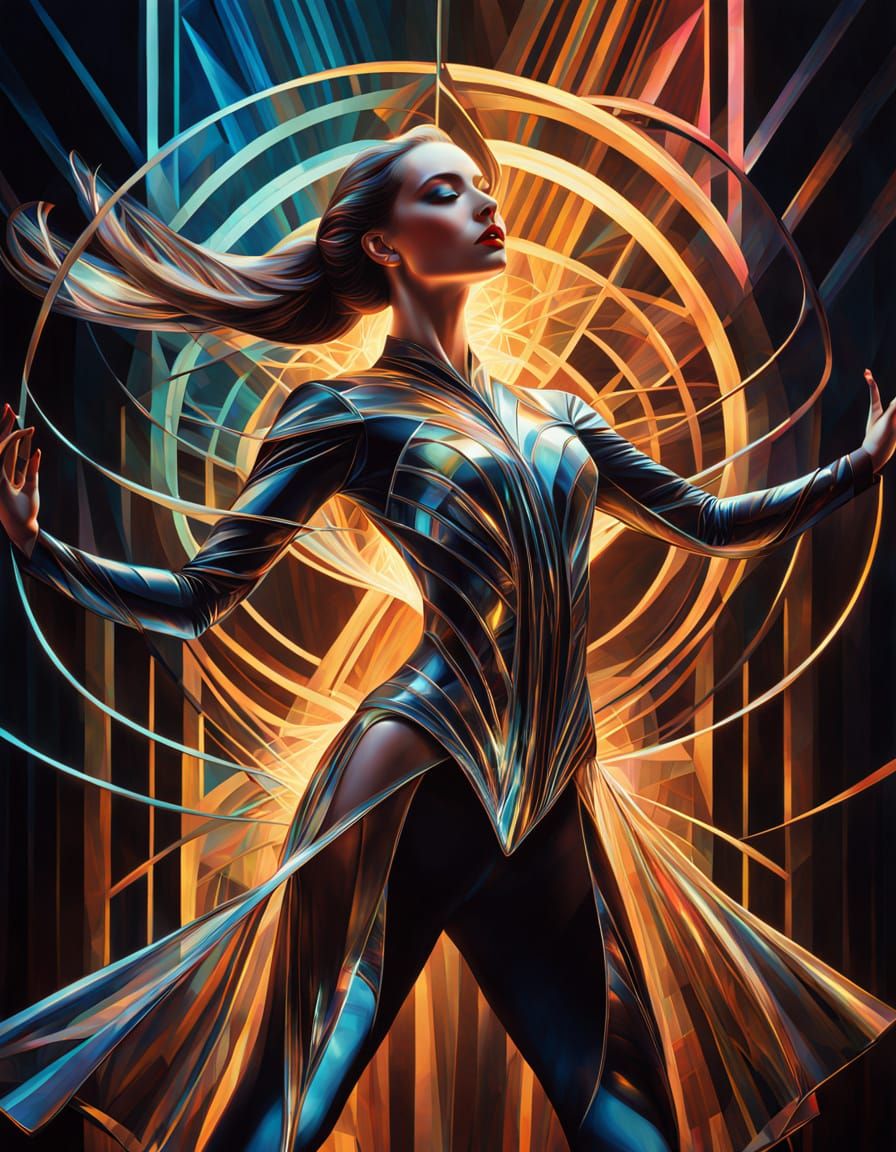 Inpainting, double exposure, full body ballet dancer, A glowing lines ballerina in glass suit dress. Flowing long hair, beautiful face , glowing lines shape of stained glass ballet suit, see through on prism glass, high contrast, hdr, smokes, dance on stage was filled with thick smoke and spotlight ...