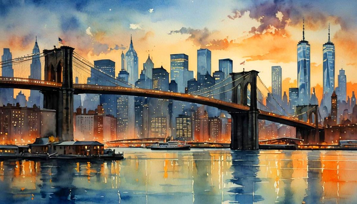 Create your own stunning watercolor images of the Brooklyn Bridge for free with our AI-powered generator.