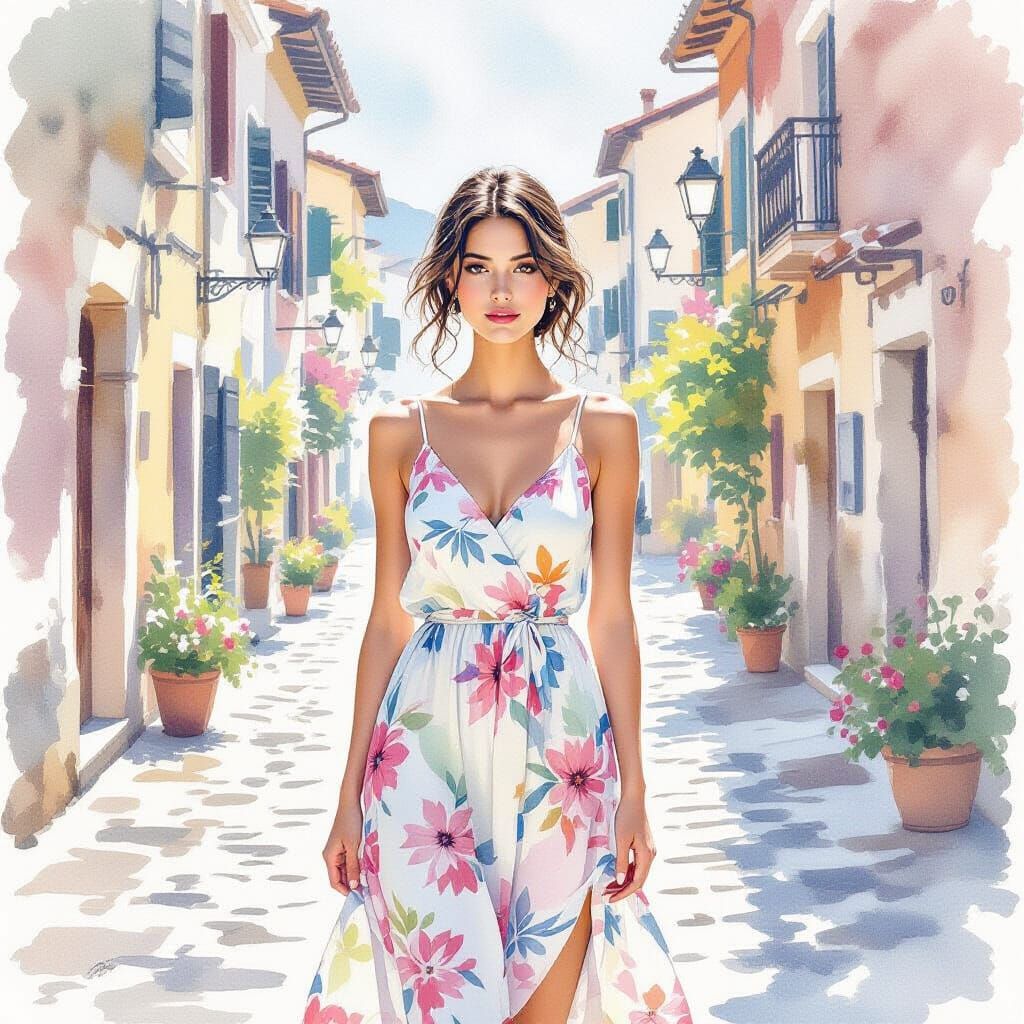 Create your own beautiful watercolor paintings of women in summer dresses with our free AI image generator.