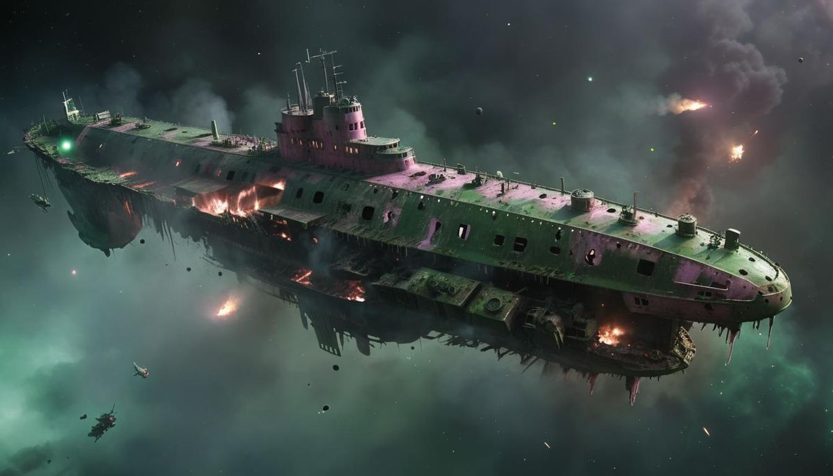 Return fire on the battle-carrier was ineffective. Commander D'Iræ could see it absorb hits like a heavyweight fighter and screamed in frustration as a light cruiser exploded into three ugly chunks. One of those chunks hit a support carrier, which the pirates then dispatched as it reeled from the impact.