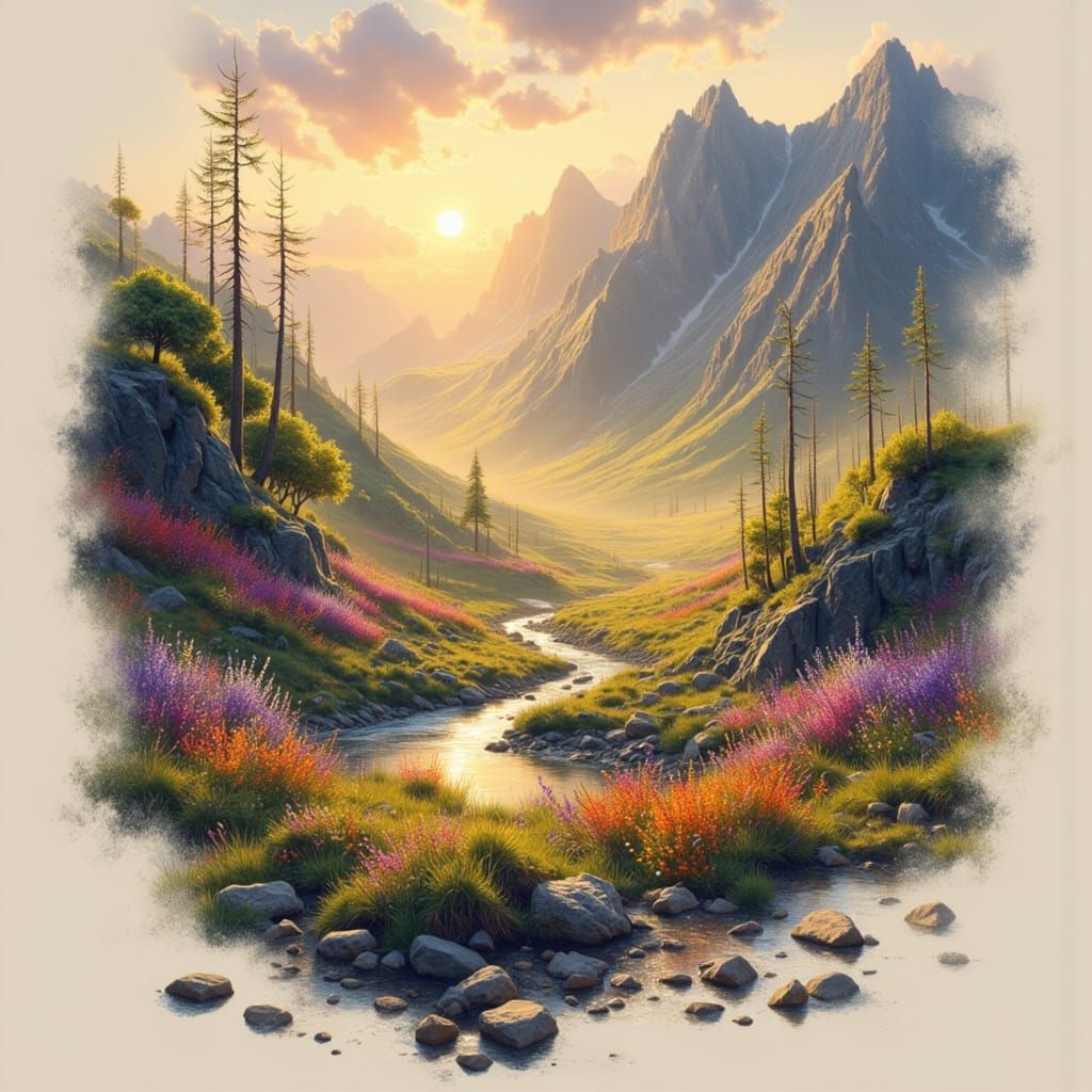 Vivid Sunset Landscape in Anime and Impressionist Style