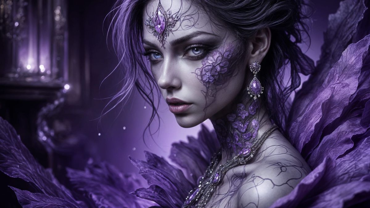 Generate unique violet characters with opulent details easily and for free using our AI image generator.
