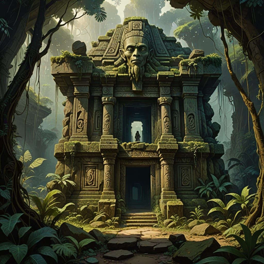 Generate your own ancient jungle temple images, complete with alien symbols. Free and easy AI image creation.