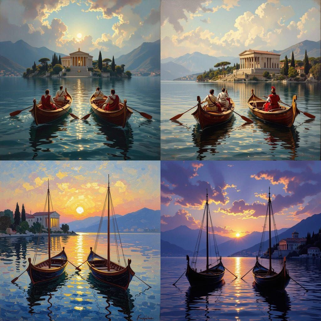 Generate your own images of ancient Roman boats sailing on Lake Nemi with our free AI tool. Easy and fast!
