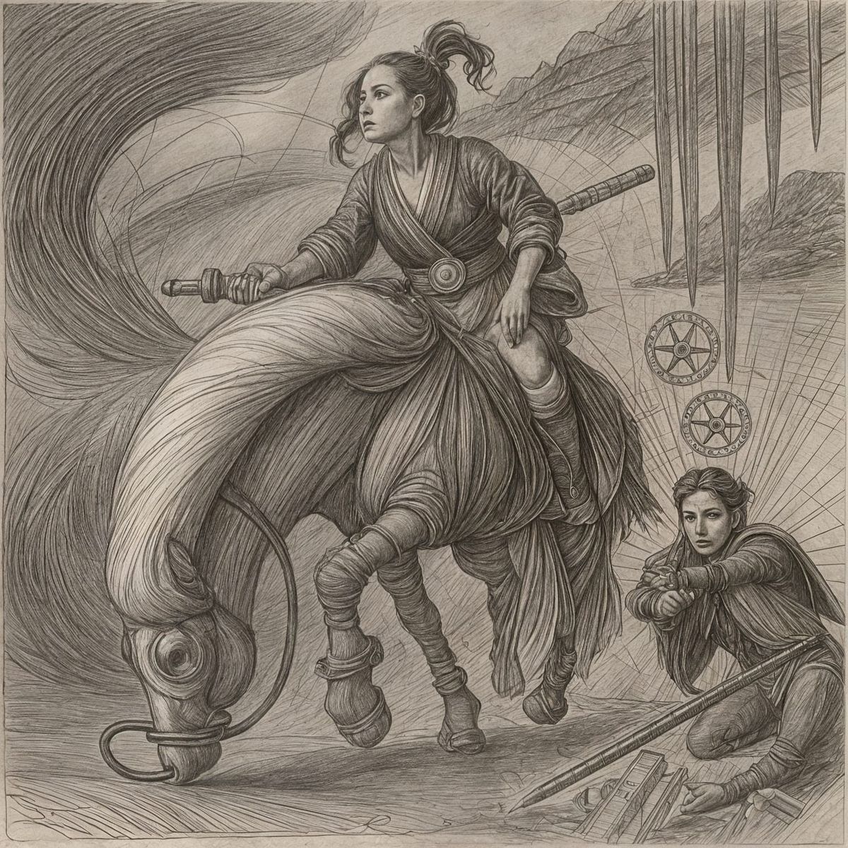 This image is a pencil sketch depicting radial balance and aerial perspective, as generated by an AI with a focus on drawing techniques.