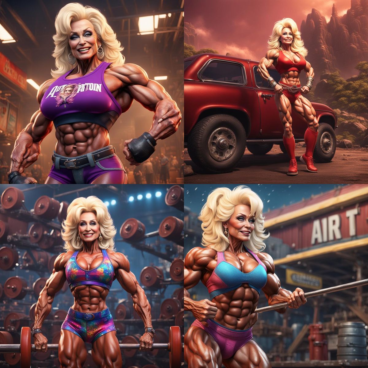 Get creative with our free AI image generator and easily make your own Dolly Parton bodybuilder pictures