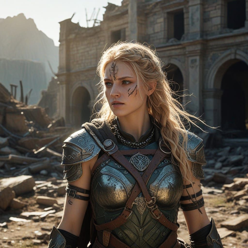 Create your own gritty post-apocalyptic shieldmaiden images. It's free and easy with our AI image generator!