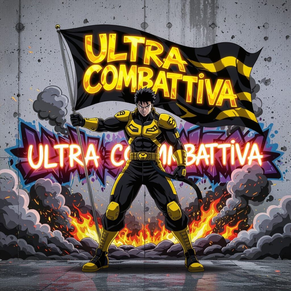 This image features a vibrant graffiti mural of a heroic shonen-style anime fighter. Rendered in a passionate street art style with neon graffiti elements and dynamic energy.