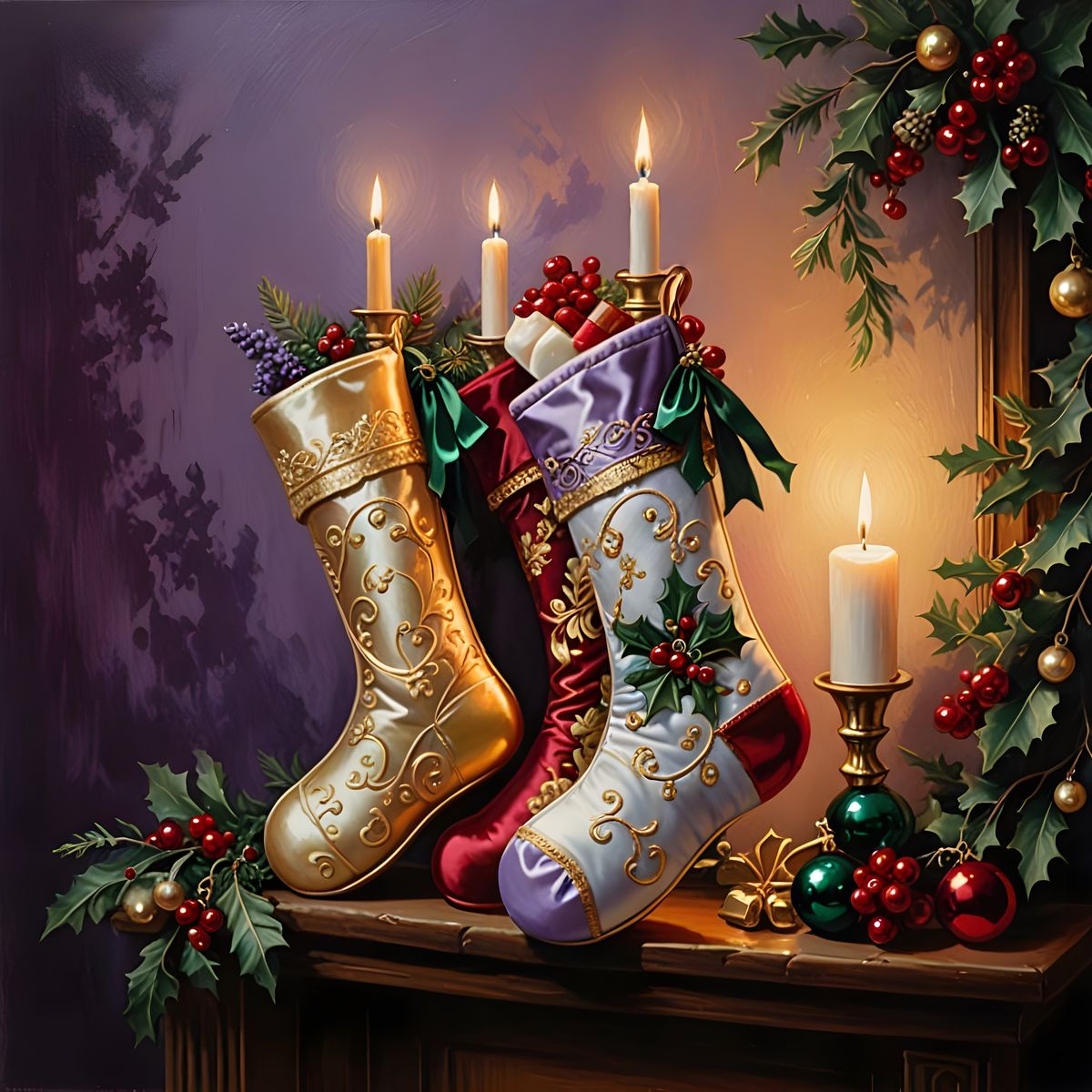 Sock Design – Christmas Socks for the Family - Vintage and Fairytale Oil Painting Style