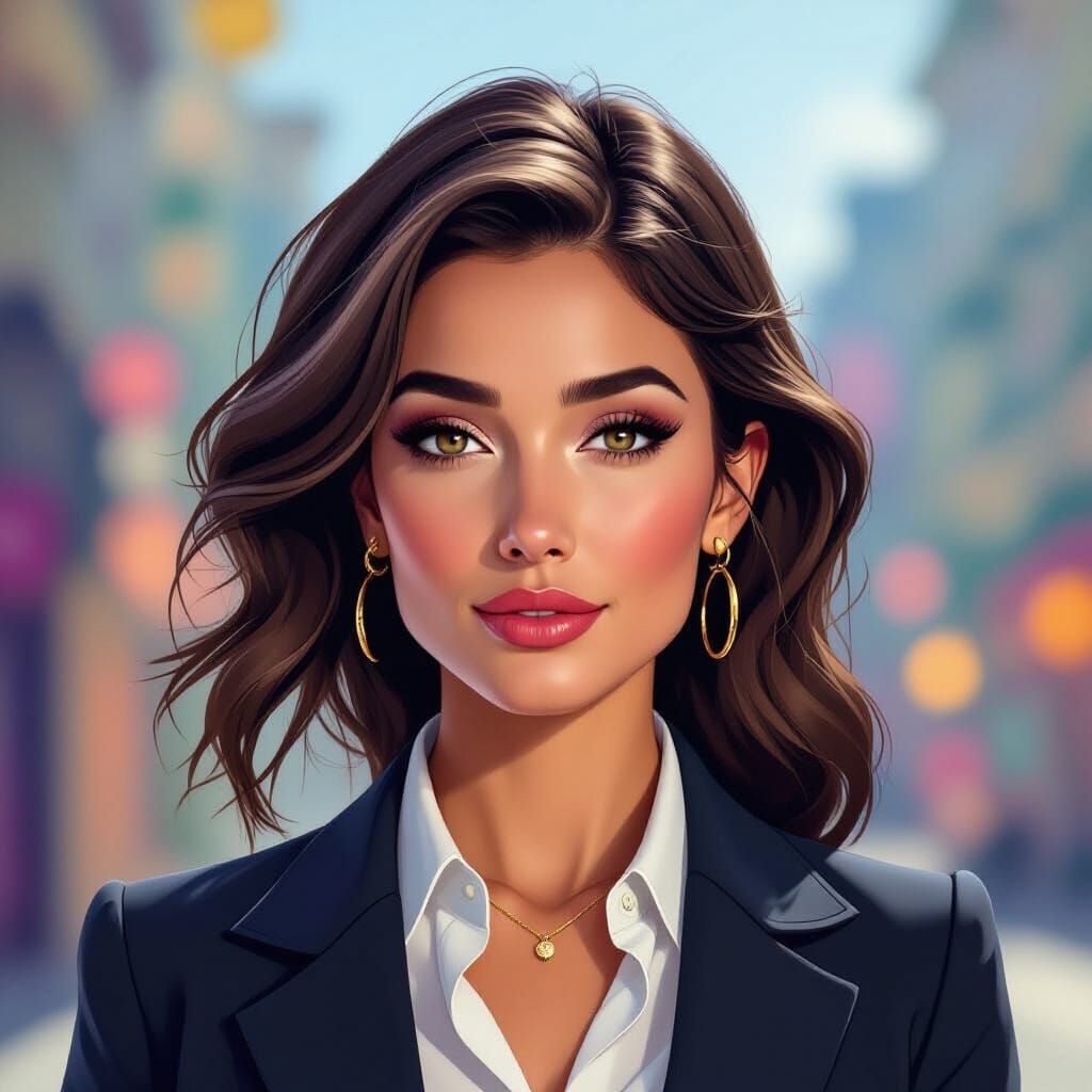 A vibrant splash art image of Detective LaBlanche, a stylish French woman who can see three minutes into the future. The image features dramatic lighting and moody colors, as 2/3 face angle.
