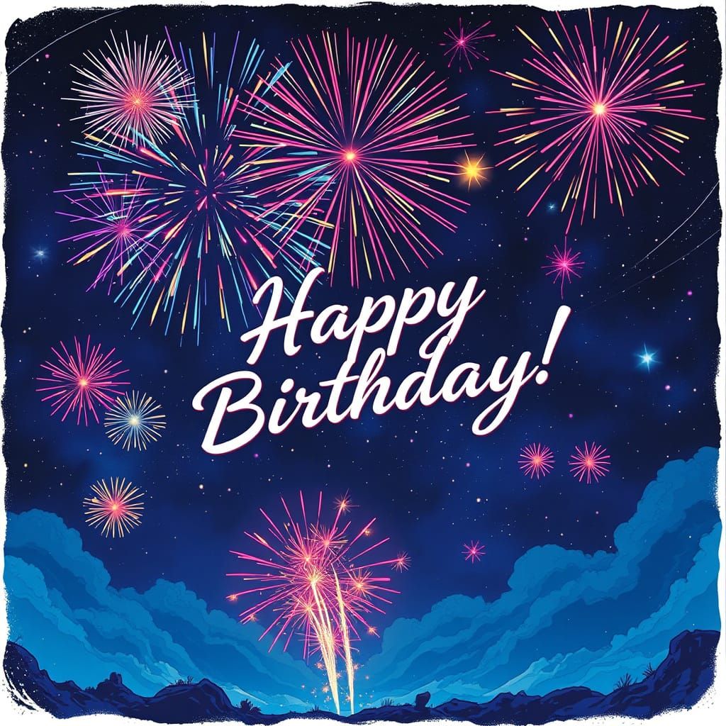 Create your own stunning and personalized birthday fireworks displays with our free AI image generator!
