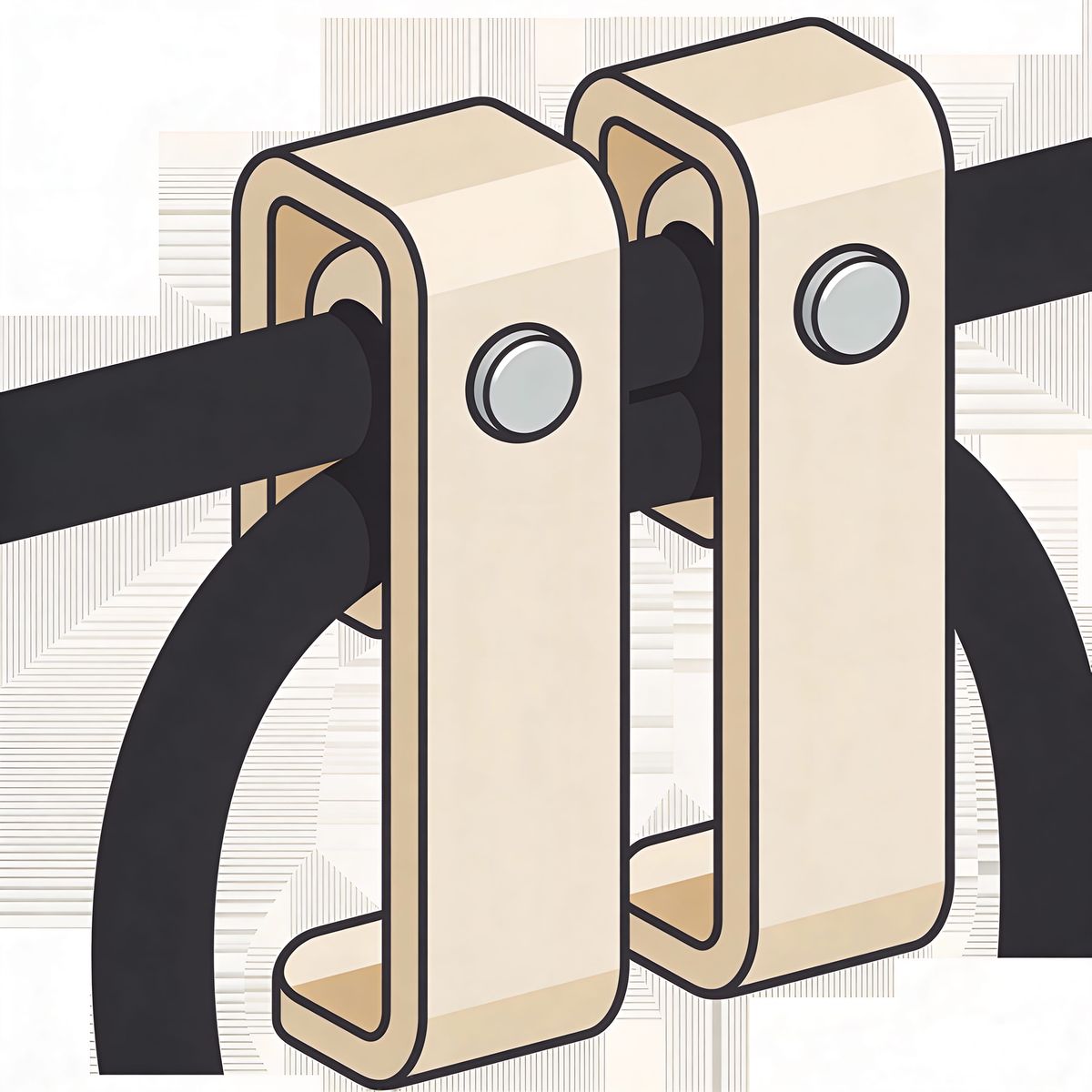 This image features a clean, flat vector illustration of a generic cable clip. Rendered in a modern, commercial style with solid colors and sharp lines, perfect for design projects.