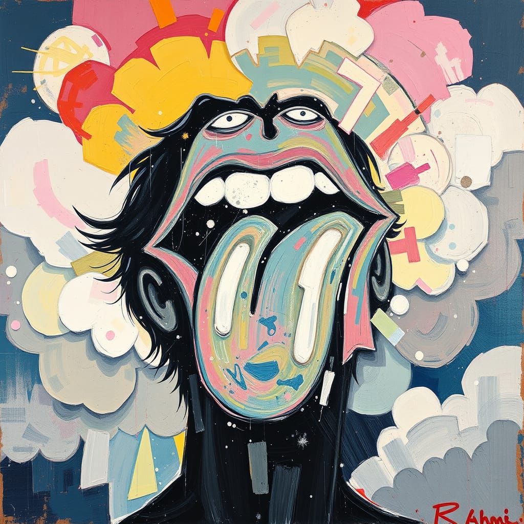 A vibrant artwork inspired by Rolling Stones lyrics. The image features bold brushstrokes and intricate textures, in a style reminiscent of abstract expressionism.