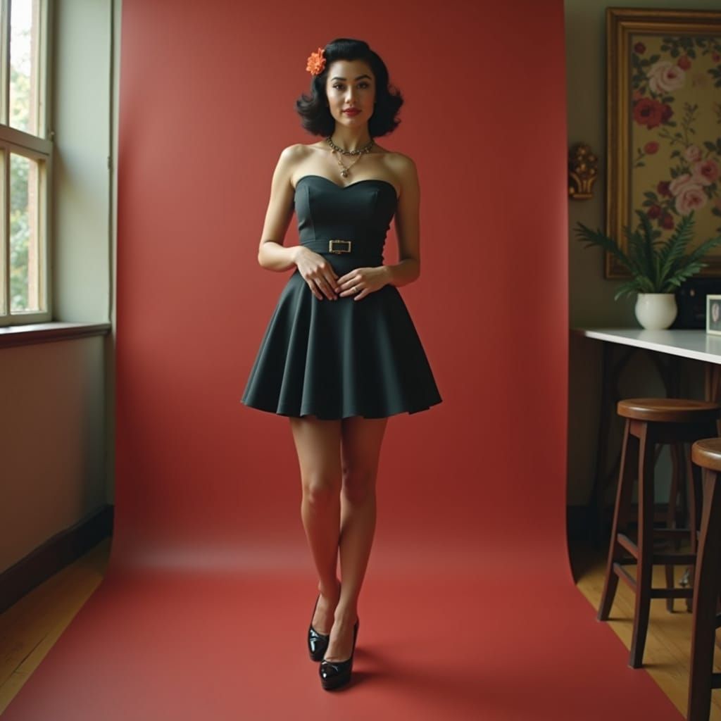 Easily create your own vintage glam pin-up images celebrating self-love and healthy body image with our free AI generator.