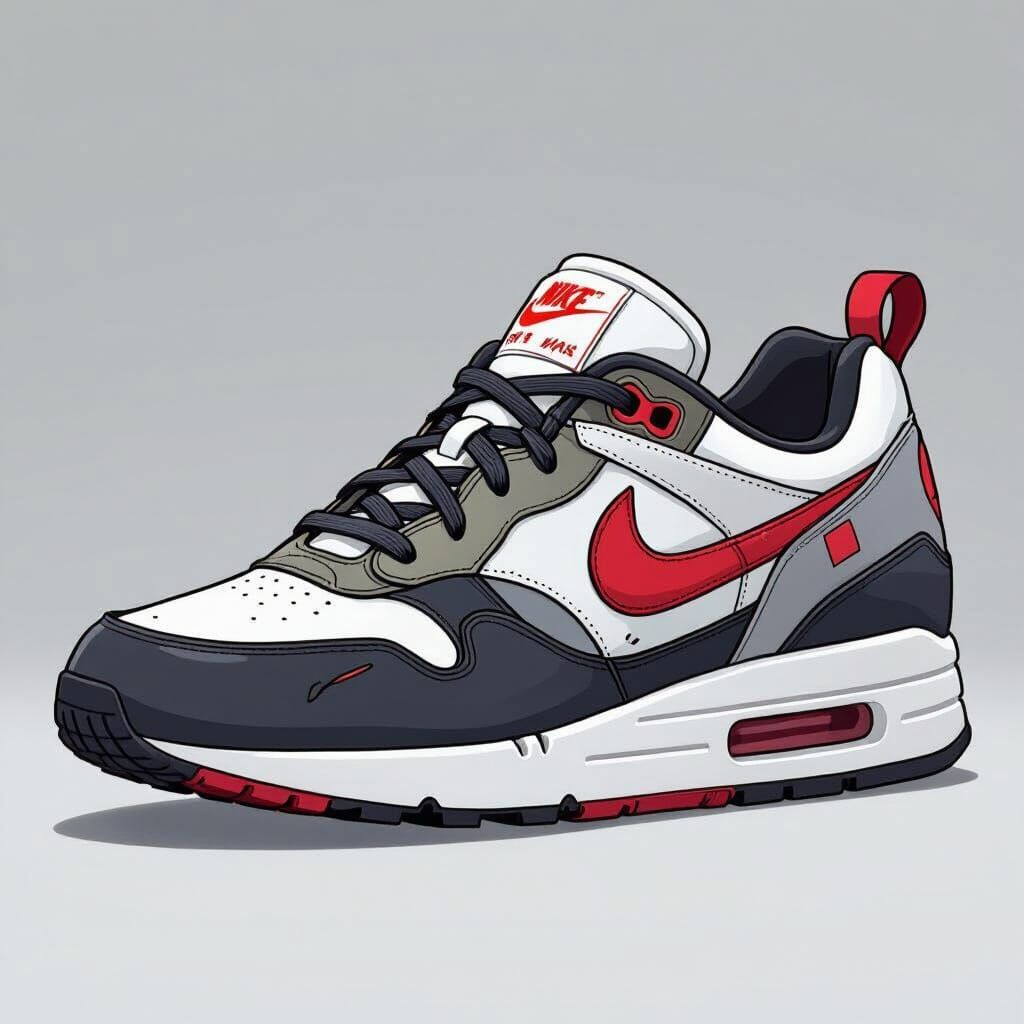 This image displays a highly detailed anime-style illustration of the notwoways M1 sneaker, isolated on a white background. It features clean lines, cel-shading, and vibrant colors, highlighting the shoe's design.