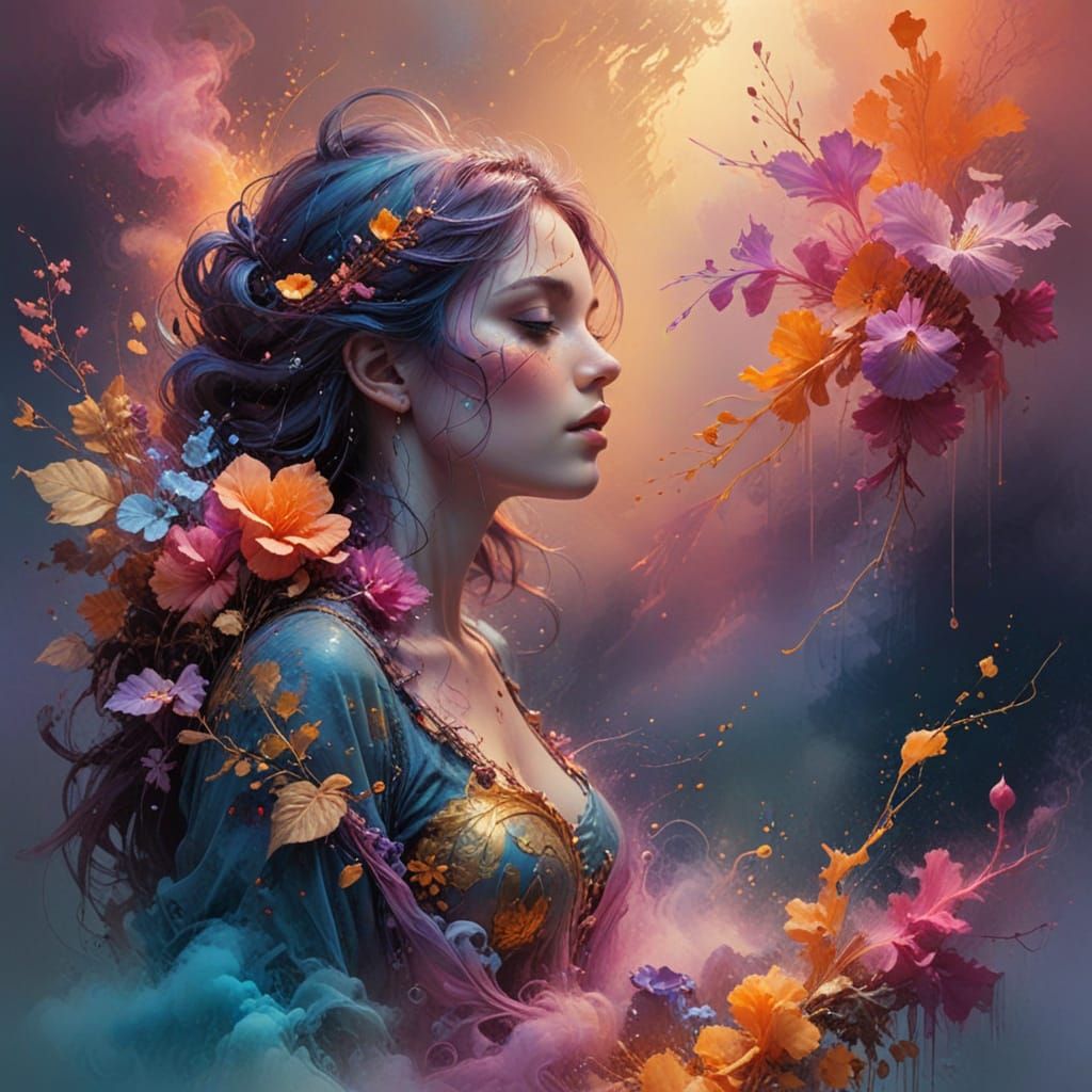 This image is a highly detailed, hyper-realistic digital artwork featuring a vibrant, smudged grunge palette of blue, fuchsia, orange, lilac, and gold. Set in a foggy Australian atmosphere, the piece showcases a mastery of digital art reminiscent of oil paintings and the styles of Thomas Kinkade and Albe...
