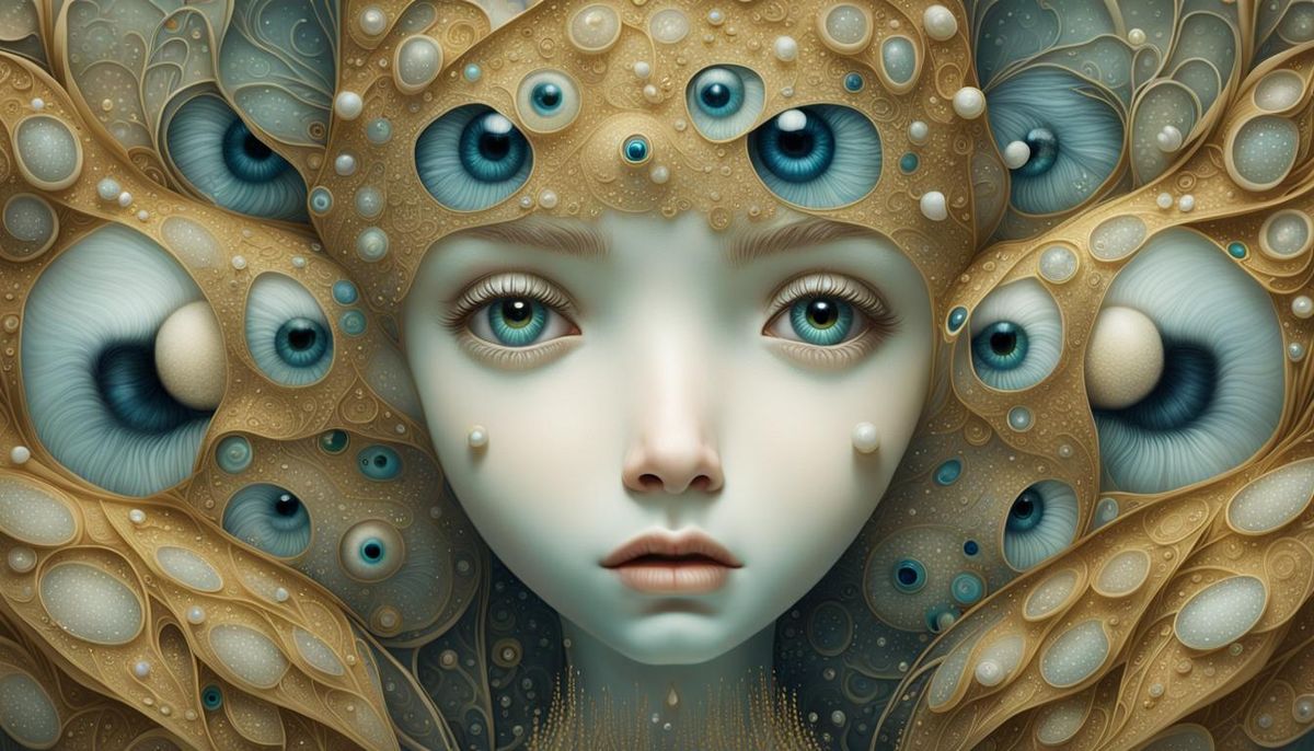 Extremely_contrasting_close-up, frontal view of water fairy sad face with tears in the enchated forest_intricate_complex golden ratio white fractal woman, hyperdetailed_sparkling_eyes A breathtaking masterpiece Mark Ryden, pop surrealism, anton semenov, with haunted eyes , detailed digital illustration, ...