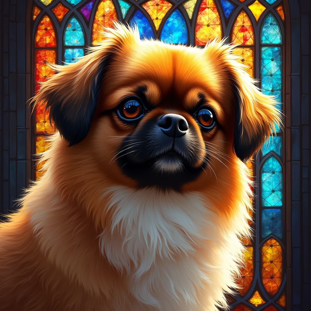 Easily create your own Japanese Chin breed portraits in stunning stained glass style with our free AI image generator