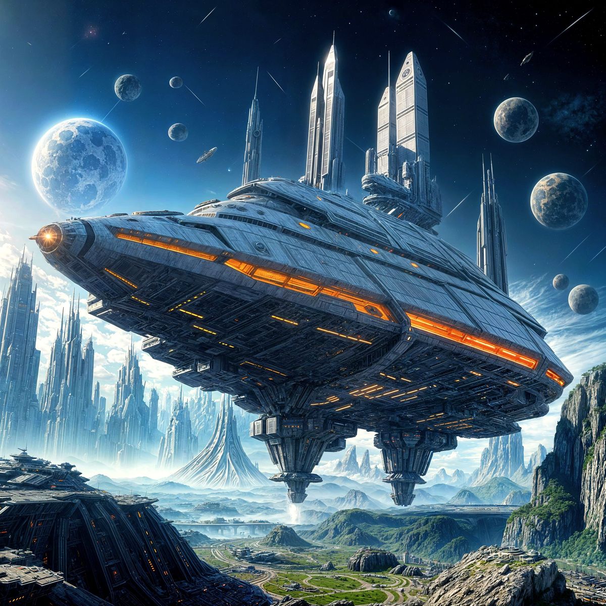 Create your own stunning spaceship and sci-fi city images with our free AI generator. It's easy and fun!