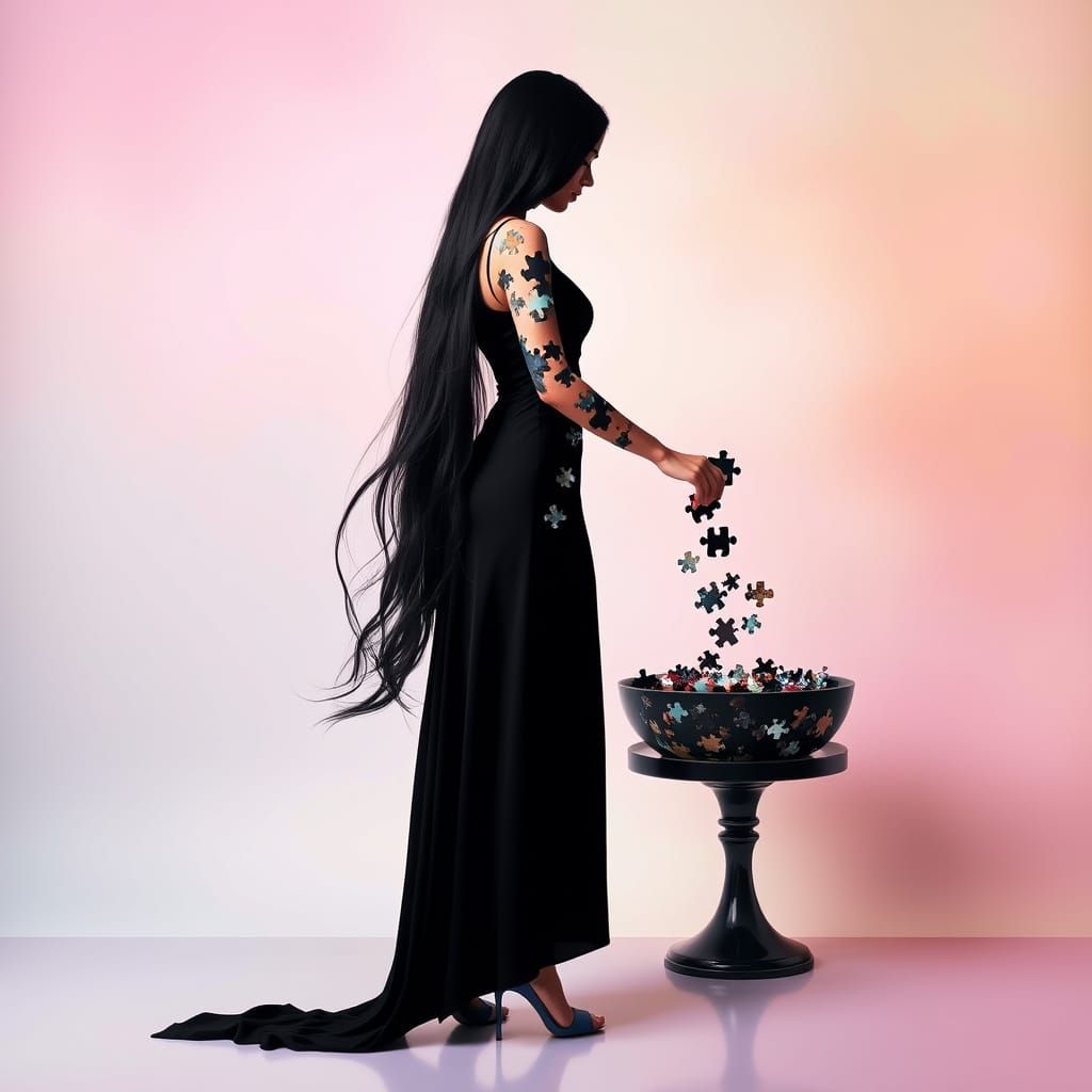 Easily design your own enigmatic woman puzzle images with our free AI generator - no experience needed!