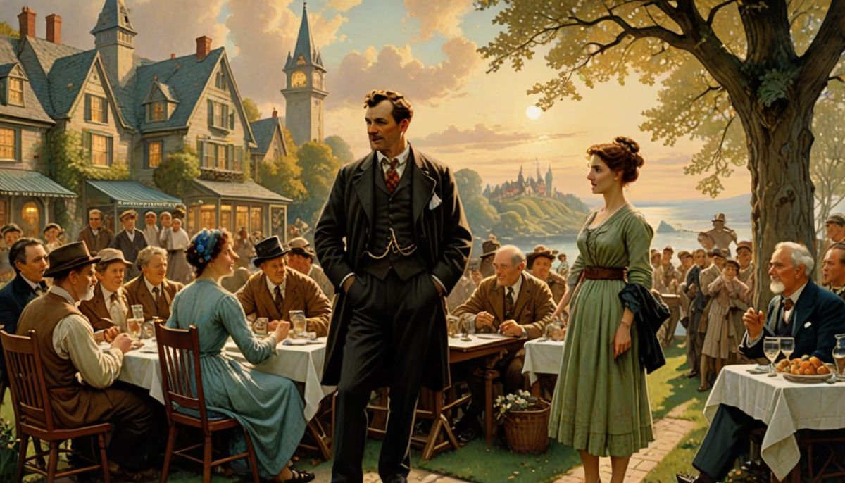 This image depicts a charming, idealized village, reminiscent of classic storybook illustrations and nostalgic American art, rendered with meticulous detail and warm lighting.