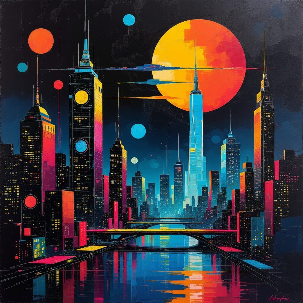 Easily create stunning cityscape images with our free AI image generator, using bold, neo-impressionist colors and styles