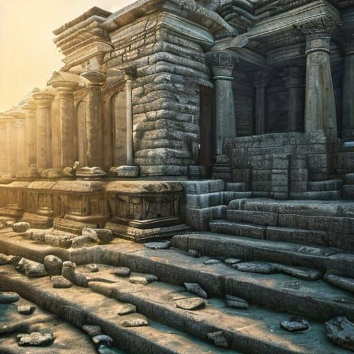 This image shows what an AI image generator created when given a very simple prompt about ancient ruins.