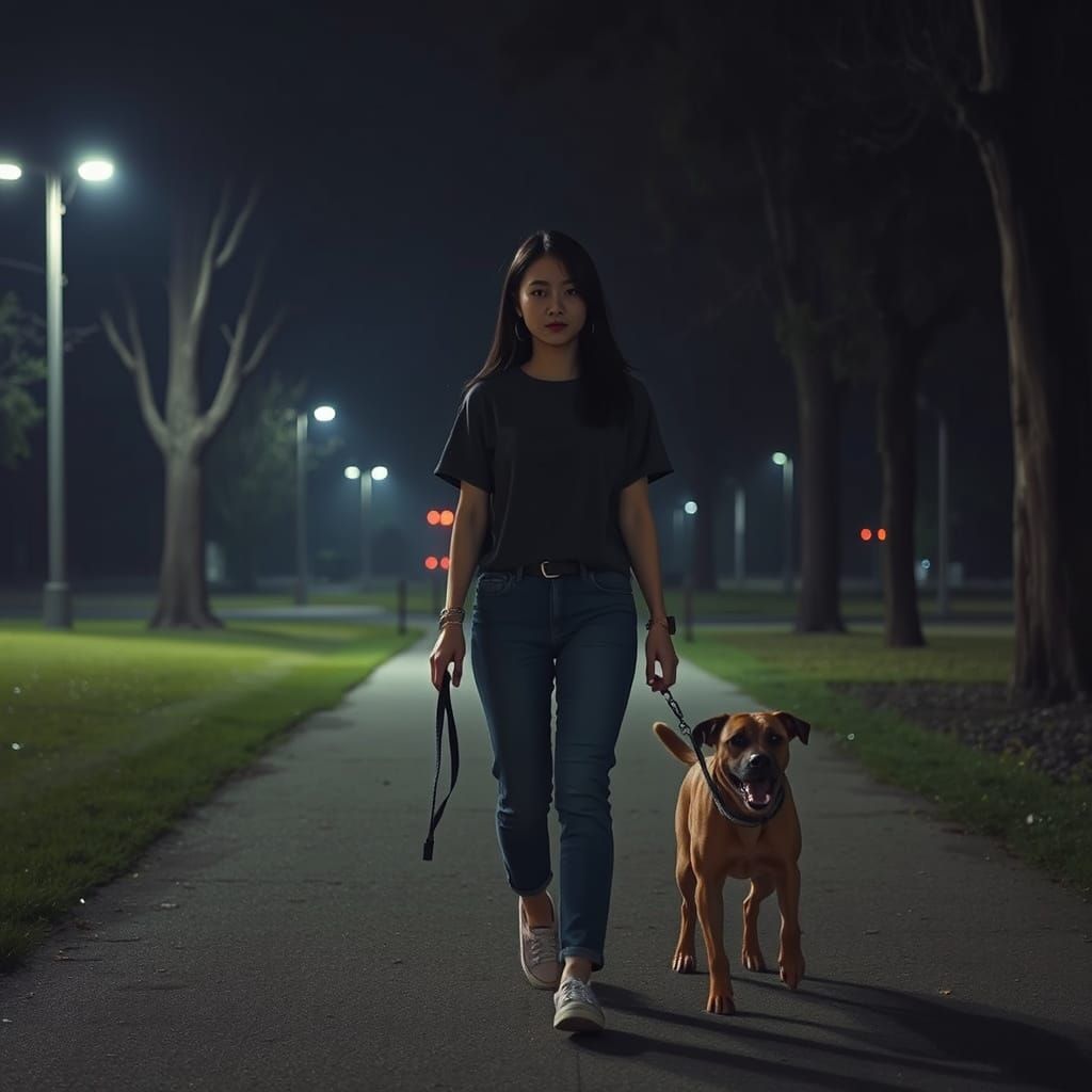 Create your own images of Korean women walking their dogs at night. It's free and easy with our AI image generator!
