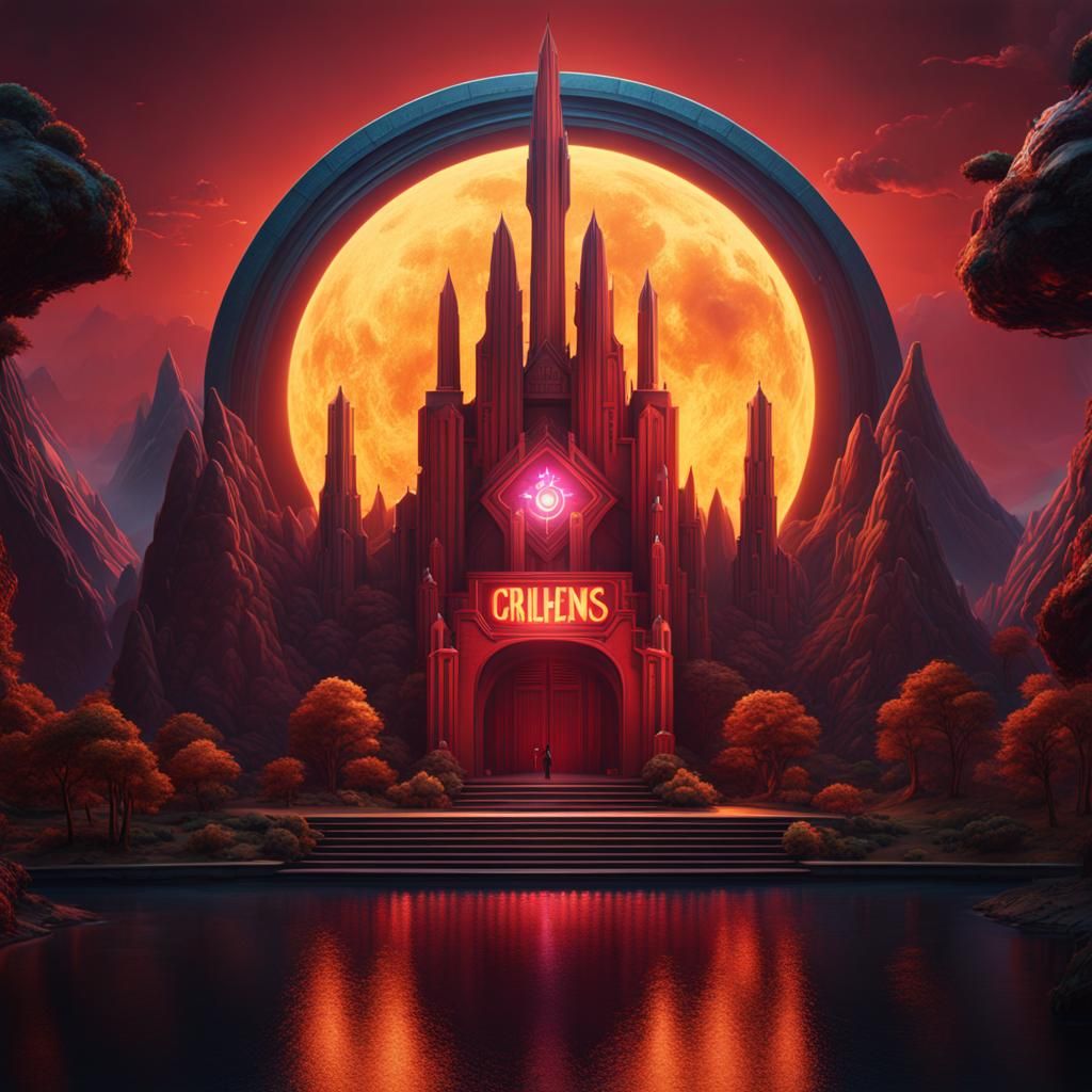 This image shows a logo for a cult film, incorporating humor and parody. The artwork features detailed matte painting and deep colors, reminiscent of fantasy concept art.