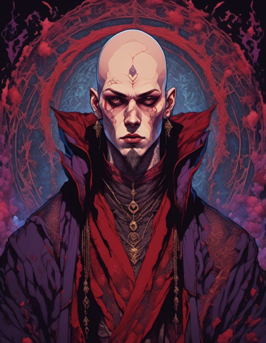 A Red Wizard of Thay in disguise. Or rather a renegade who fled the necrocratic system of the Red Wizards. He let hair grow over his sigils and found refuge in the ranks of the Black Network.