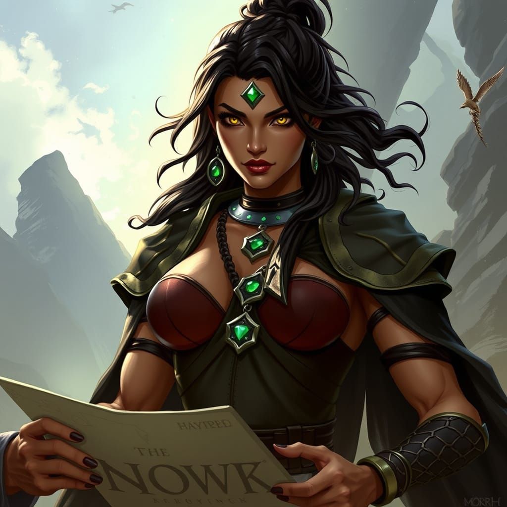 This image shows a bare-chested woman, Lady Jaye, with gleaming eyes, slapping Snake Eyes on the shoulder as he gazes at a map. It has elements of fantasy and action.