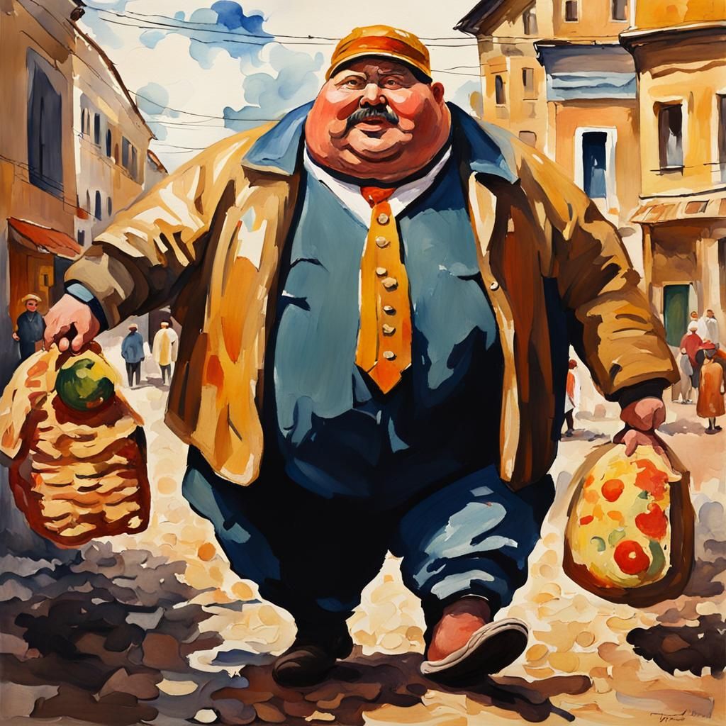 A vibrant and textured painting of rotund figures. This watercolor and gouache artwork employs thick brushstrokes and impasto techniques, creating a maximalist, museum-quality piece.