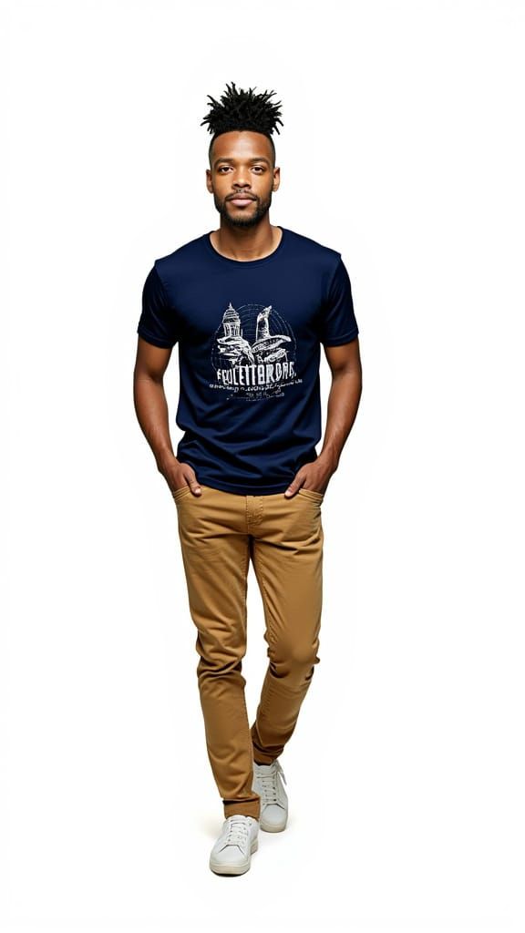 A realistic image of a man adjusting his shirt. The camera circles him in a cinematic style with nuanced lighting, reminiscent of classic film directors.
