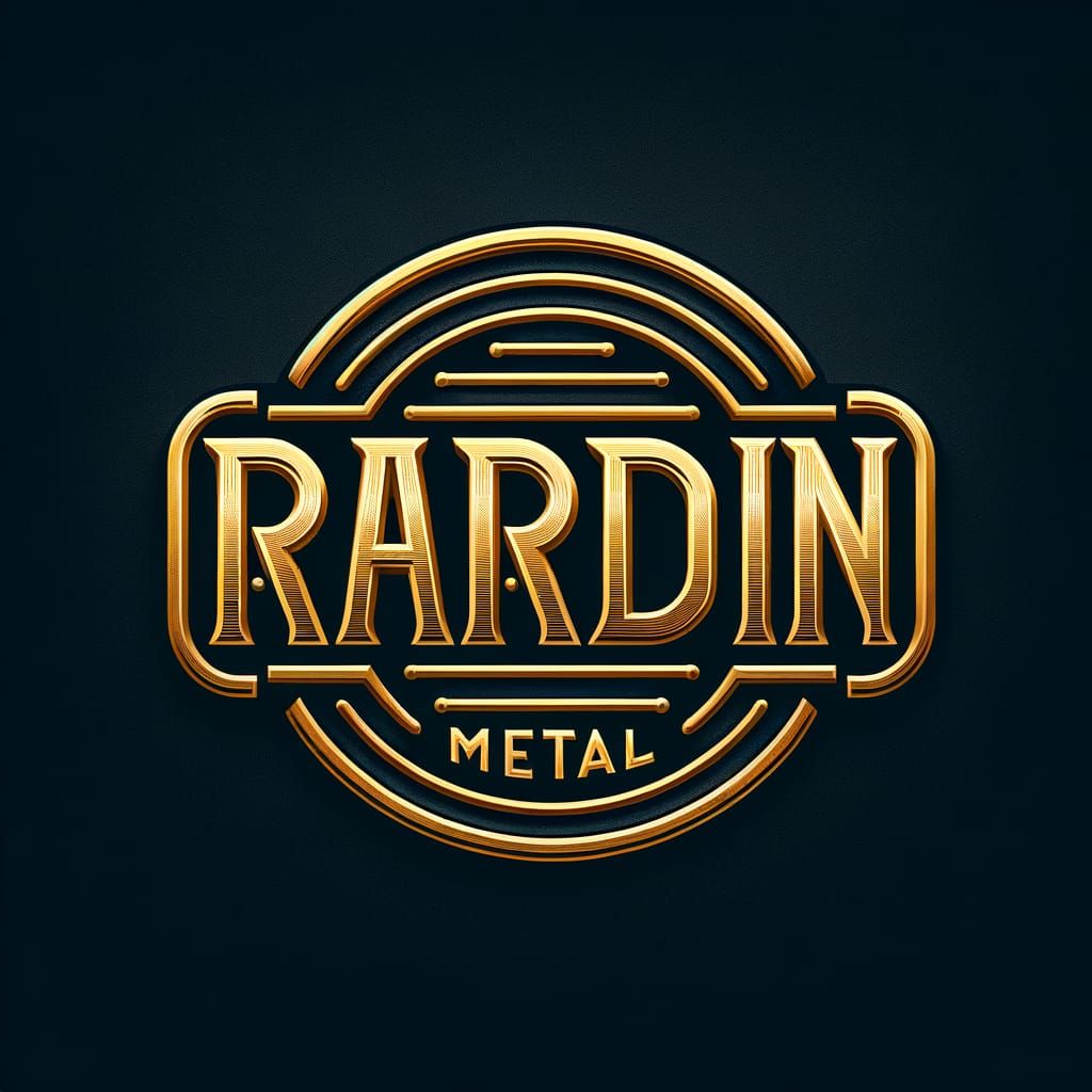 This image shows a realistic logo design featuring metallic gold lettering for the words 'Rardin Metal' on a black background, with rounded detailing for a sleek and modern look.