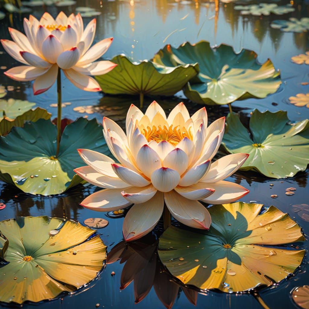 This image shows a close-up of a lotus in water, captured in a stunning Impressionist style with thick brush strokes and vibrant colors, reminiscent of a museum-quality masterpiece.
