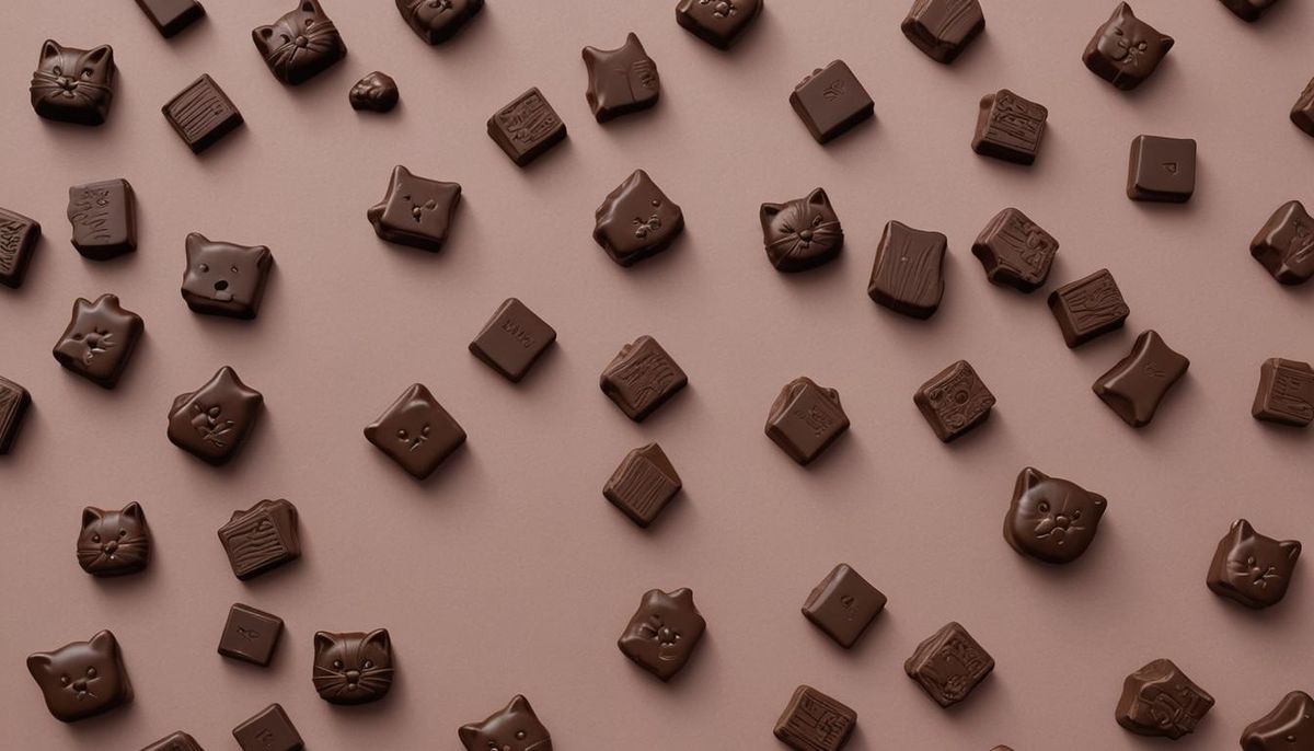 This image shows dark chocolate molded into the shapes of a kitten and a puppy. The sweet confectionary art is presented in high detail.
