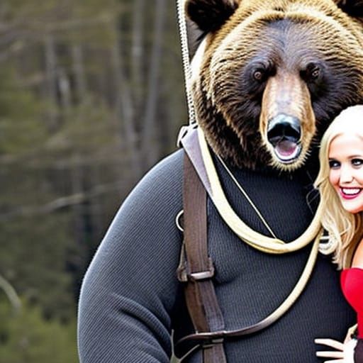 This image shows a bear and a child, rendered in a cartoon style. The pair appear to be enjoying an outing together, set against a simple background.