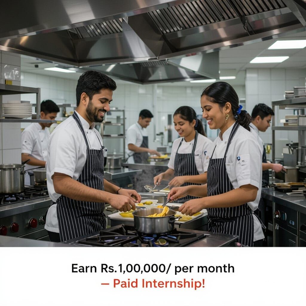 Generate your own professional kitchen images, featuring diverse interns, with our free and easy AI tool.