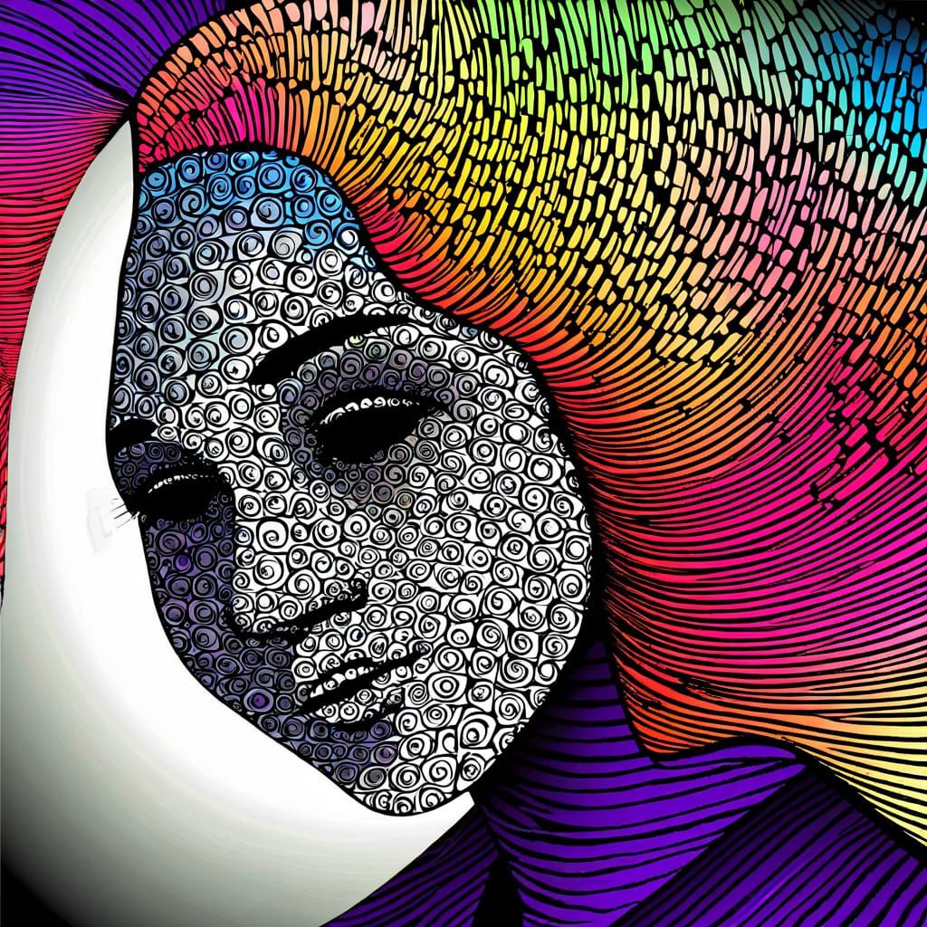 This image is a mesmerizing blend of abstract shapes and colorful florals, created using fractal and 3D shading techniques to produce a unique, Zentangle-inspired design.