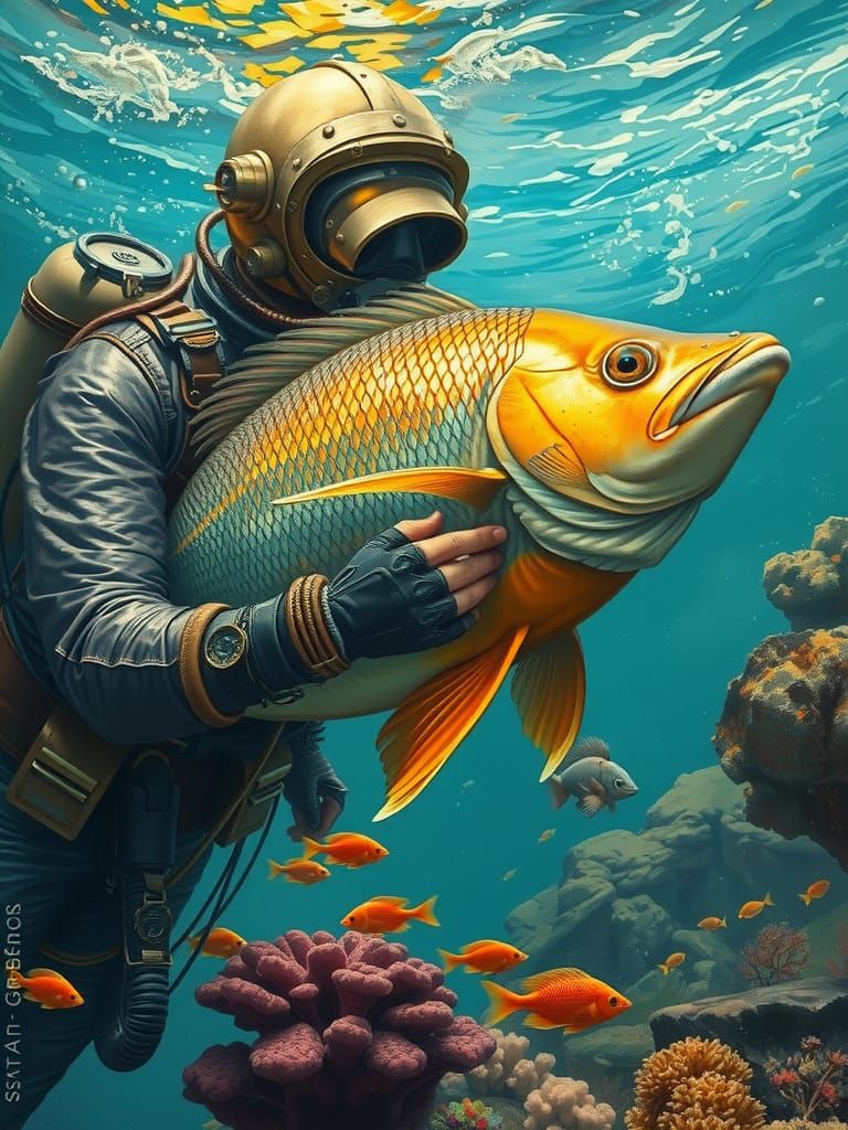 Create your own dieselpunk diver and underwater scenes with our free AI image generator. It's easy and fast!