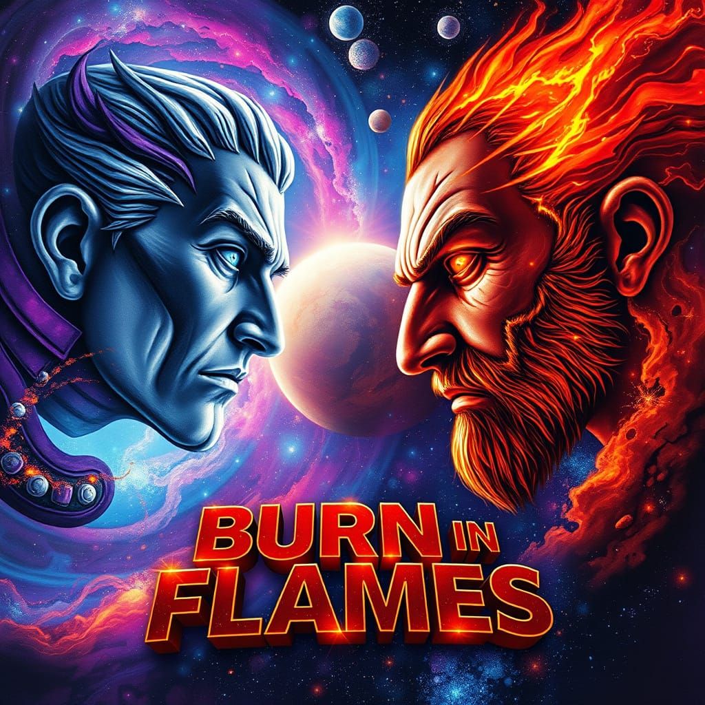 This image captures two intense, ancient warriors from a distant galaxy, their eyes blazing with an inner fire as they prepare to unleash a maelstrom of cosmic energy. Set against a vibrant, 8k galaxy with swirling nebulas, blazing starbursts, and shimmering asteroid fields.