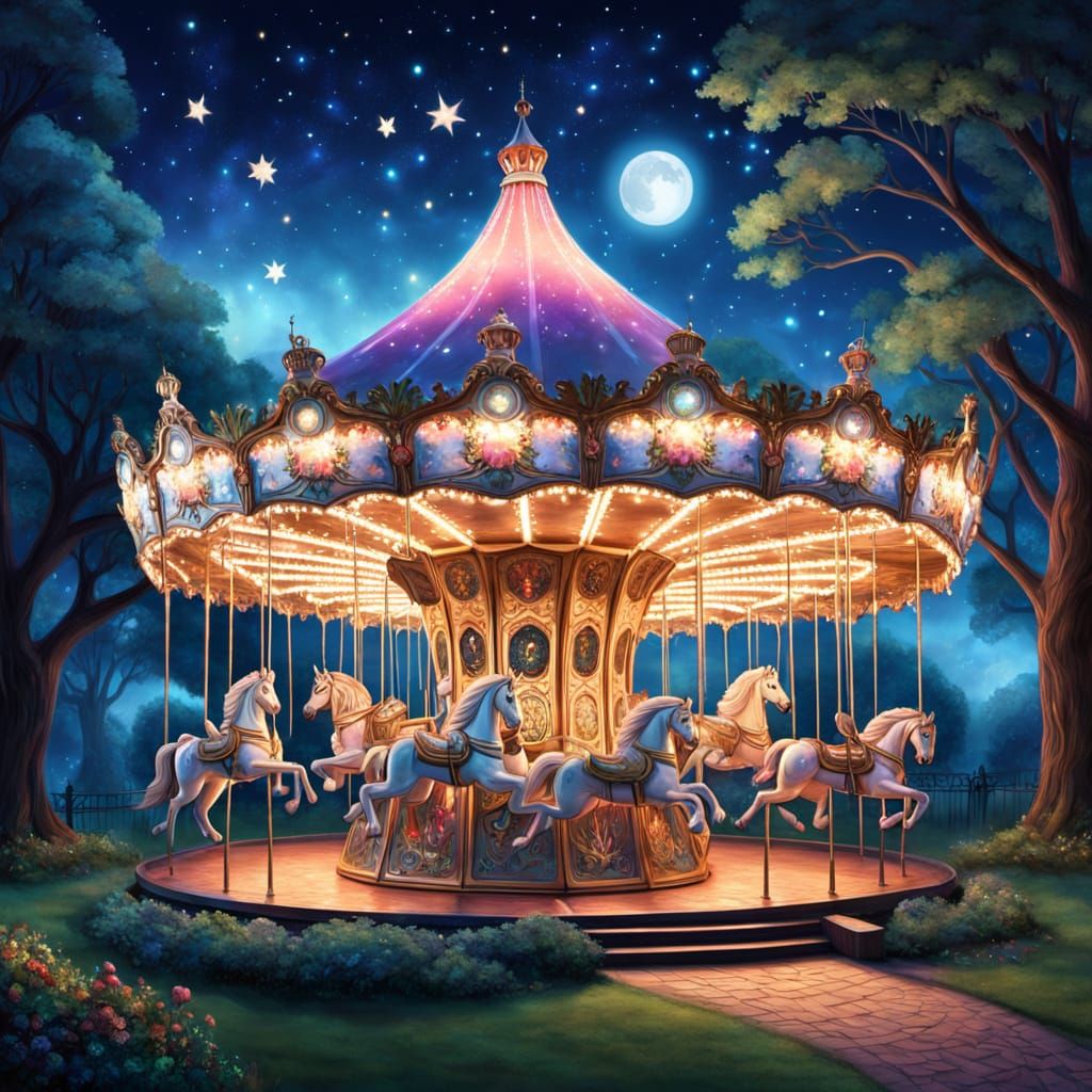 Easily create your own vibrant, glowing carousel images at night with our free AI image generator. Unleash your creativity!